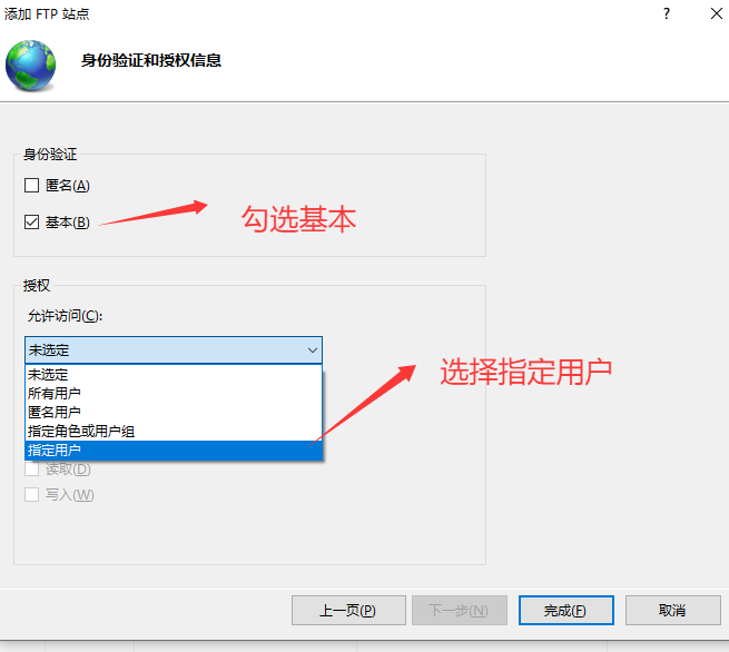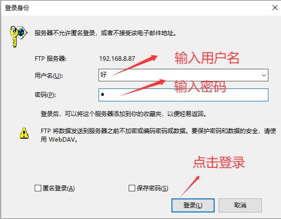以上就是今天要讲的内容,本文仅仅简单介绍了FTP服务器的配置,以上设置为指定用户访问FTP服务,所以需输入用户名和密码;若匿名访问则无需输入用户名和密码,步骤相对较为简单,不需要建立用户,权限设置选择everyone即可。
