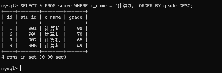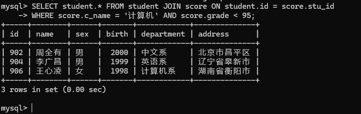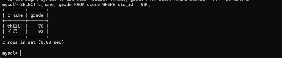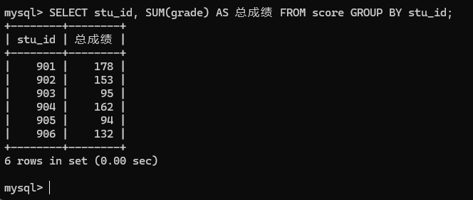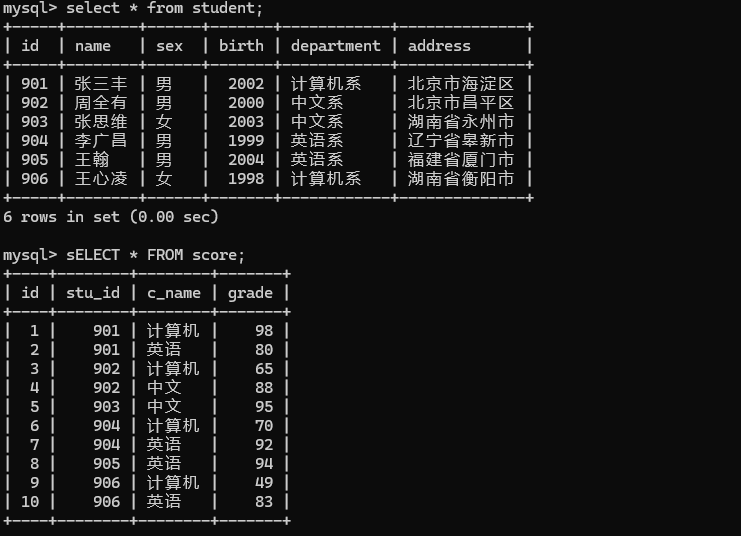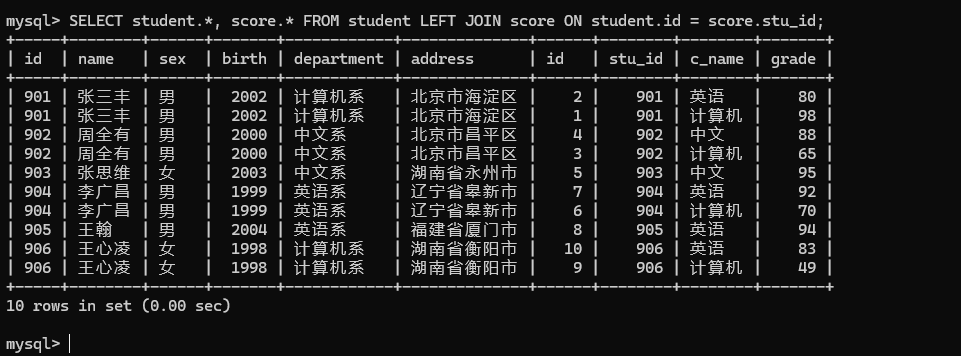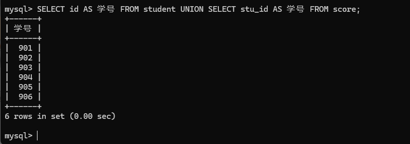 13. 从student和score表中查询出学生的学号,然后合并查询结果