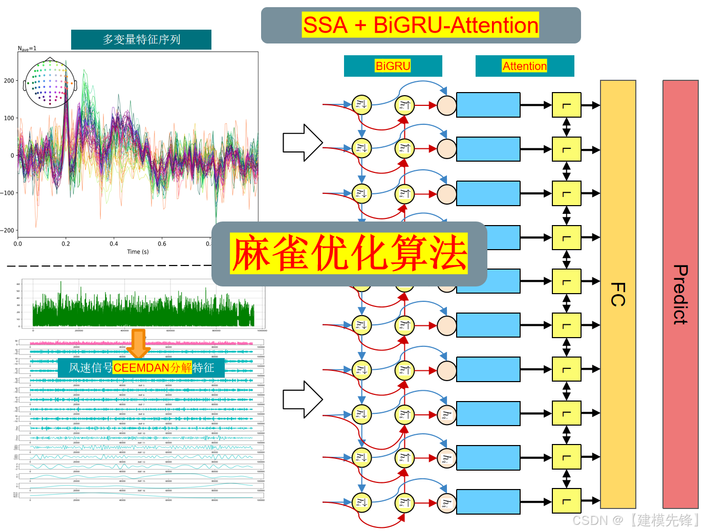多特征变量序列预测(九)基于麻雀优化算法的CEEMDAN-SSA-BiGRU-Attention预测模型 本文基于前期介绍的风速数据(文末附数据集),介绍一种综合应用完备集合经验模态分解CEEMDAN与基于麻雀优化算法的SSA-BiGRU-Attention多特征变量序列预测模型,以提高时间序列数据的预测性能。