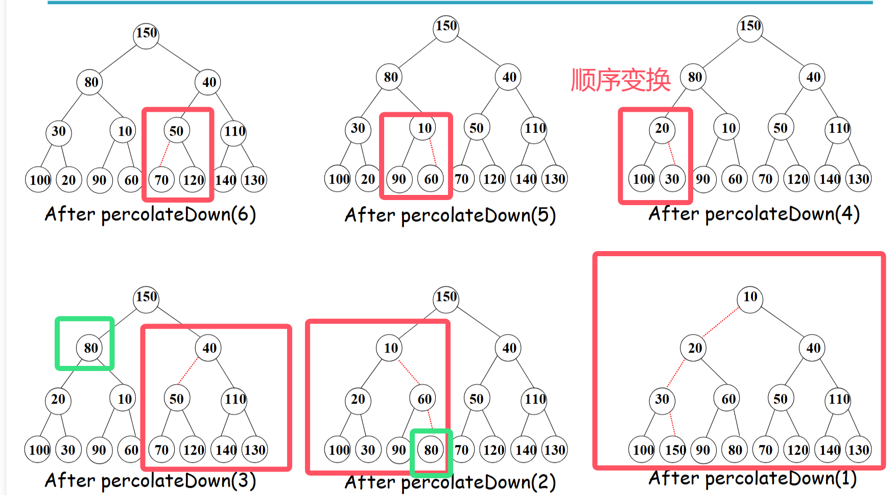 - 先批量插入所有节点,再从底向上调整堆结构。