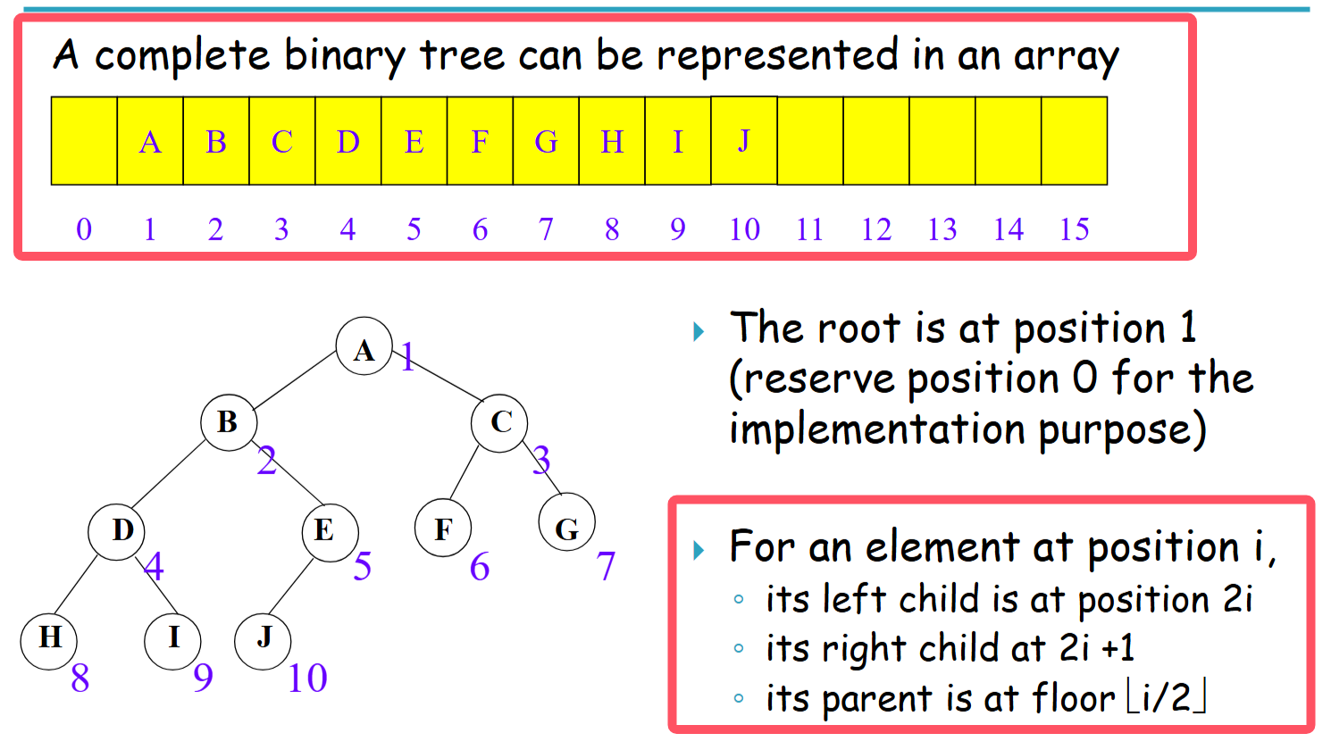- 堆的父子节点关系在索引从 1 开始时更加简单: