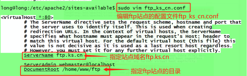sudo cp 000-default.conf ftp_ks_cn.conf编辑ftp站点的配置文件ftp_ks_cn.conf