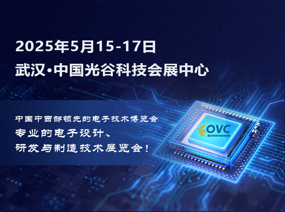 华中电子展(OVC)︱2025 武汉国际半导体产业与电子技术博览会:引领未来“芯”科技 2025武汉国际半导体产业与电子技术博览会(OVC 2025)将于2025年5月15日-17日在武汉·中国光谷科技会展中心召开,集中展示集成电路、电子元器件、半导体/芯片、显示技术、物联网技术、传感器、连接器、无线、电源、测试技术、电子材料、半导体制造装备、智能硬件、生产设备和行业解决方案,届时组委会将邀请国内外半导体、工业电子、汽车电子、医疗电子、物联网、消费电子、通信等行业数万名专业工程师采购参观。2025年,期待与您相约武汉,携手共拓电子产业新机遇!