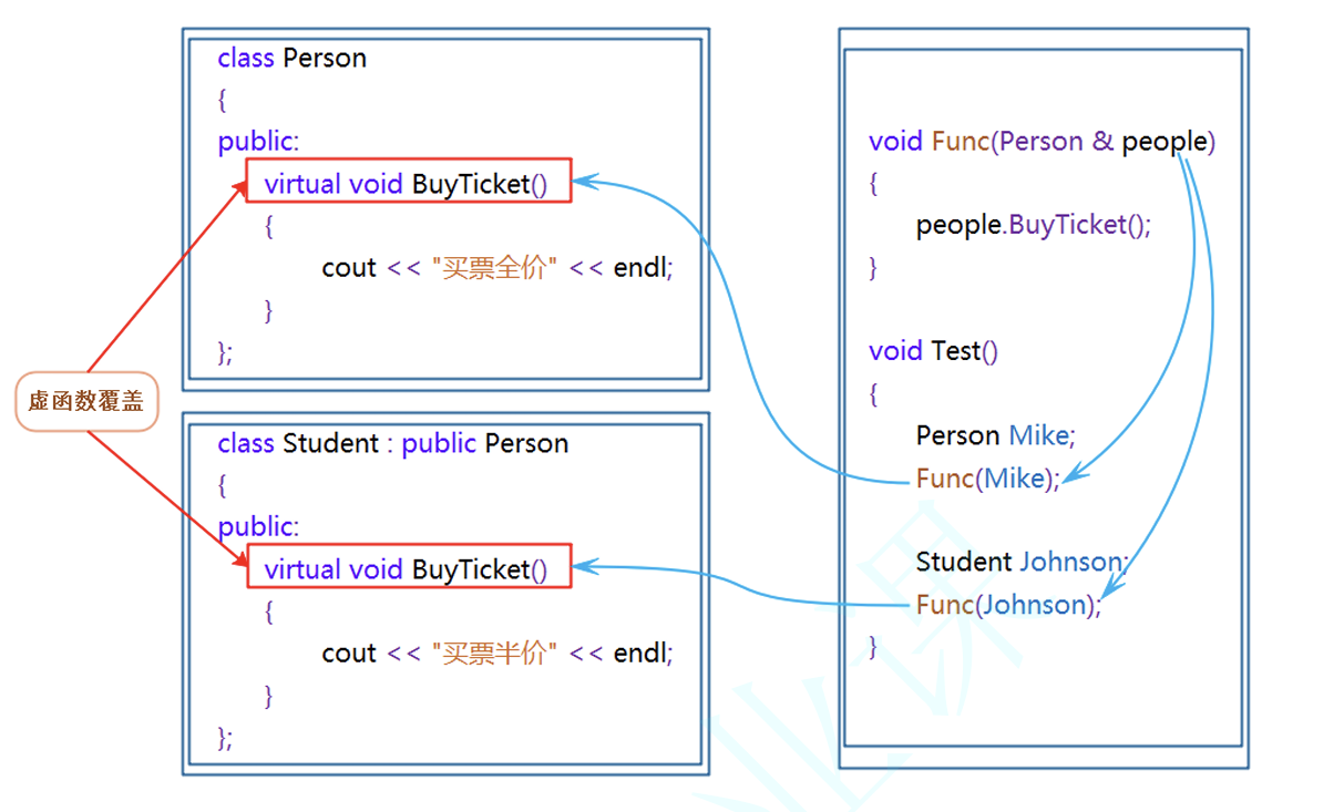 用基类引用或引用去调用虚函数时,会动态决定调用哪个版本,从而出现多态。