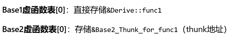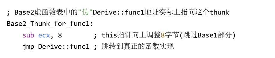 编译器为Base2的虚函数表生成一个thunk(跳板函数):