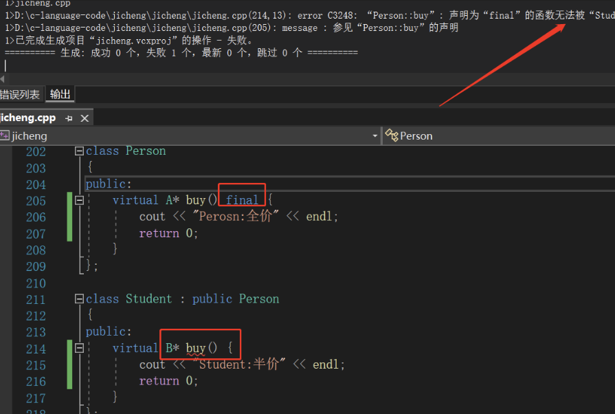 1. final:修饰虚函数,表示该虚函数不能再被重写
