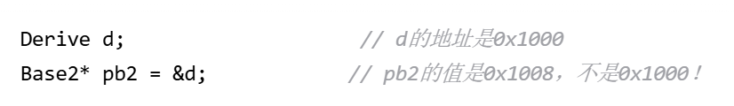 Base2* pb2 = &d; // pb2指向Base2子对象起始地址