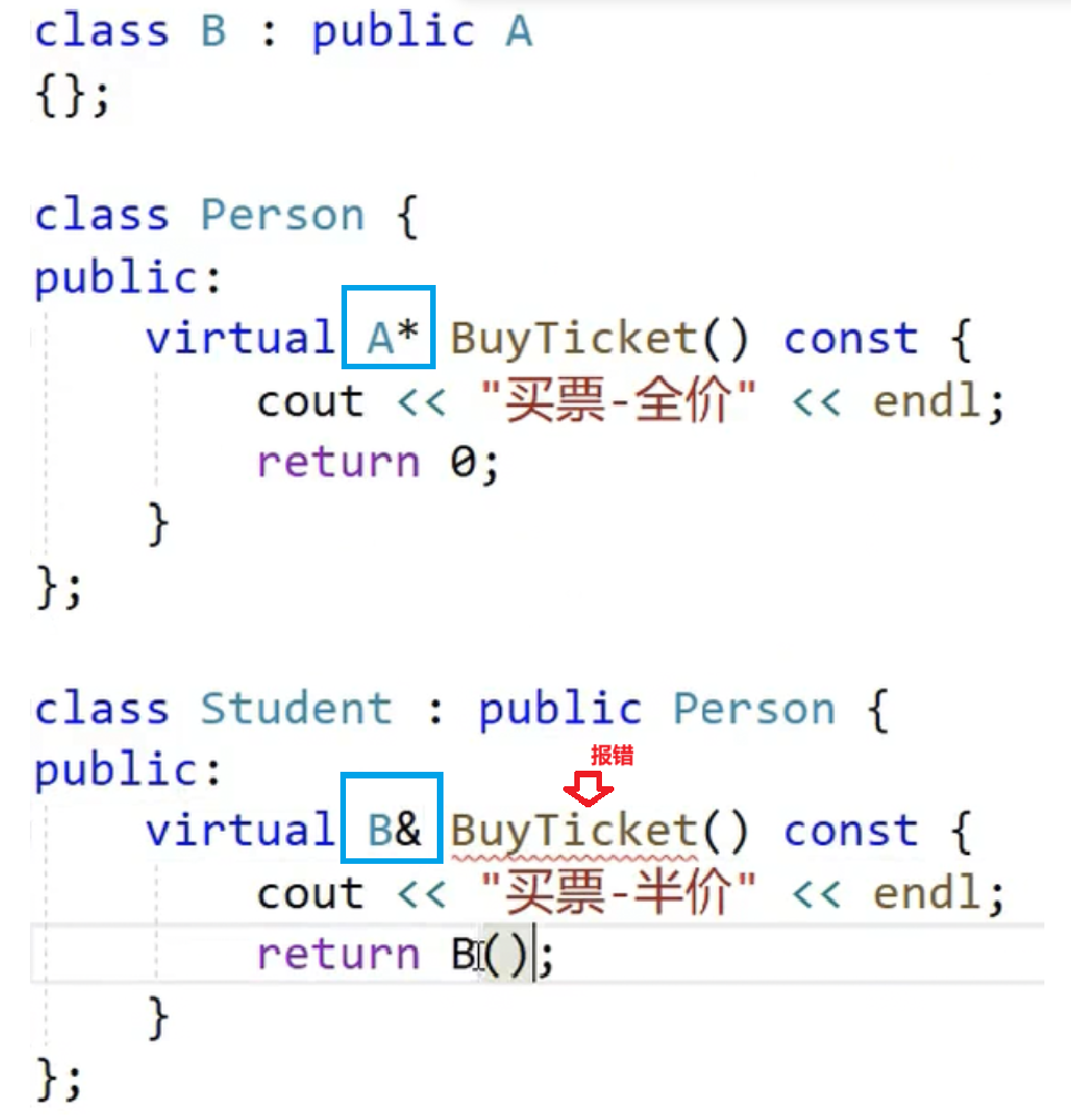 (返回类型必须同时是指针或同时是引用,不能一边是指针,一边是引用)