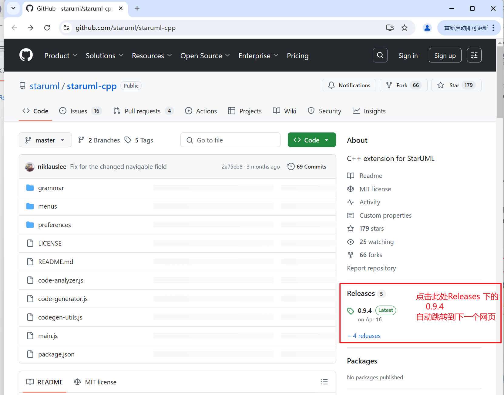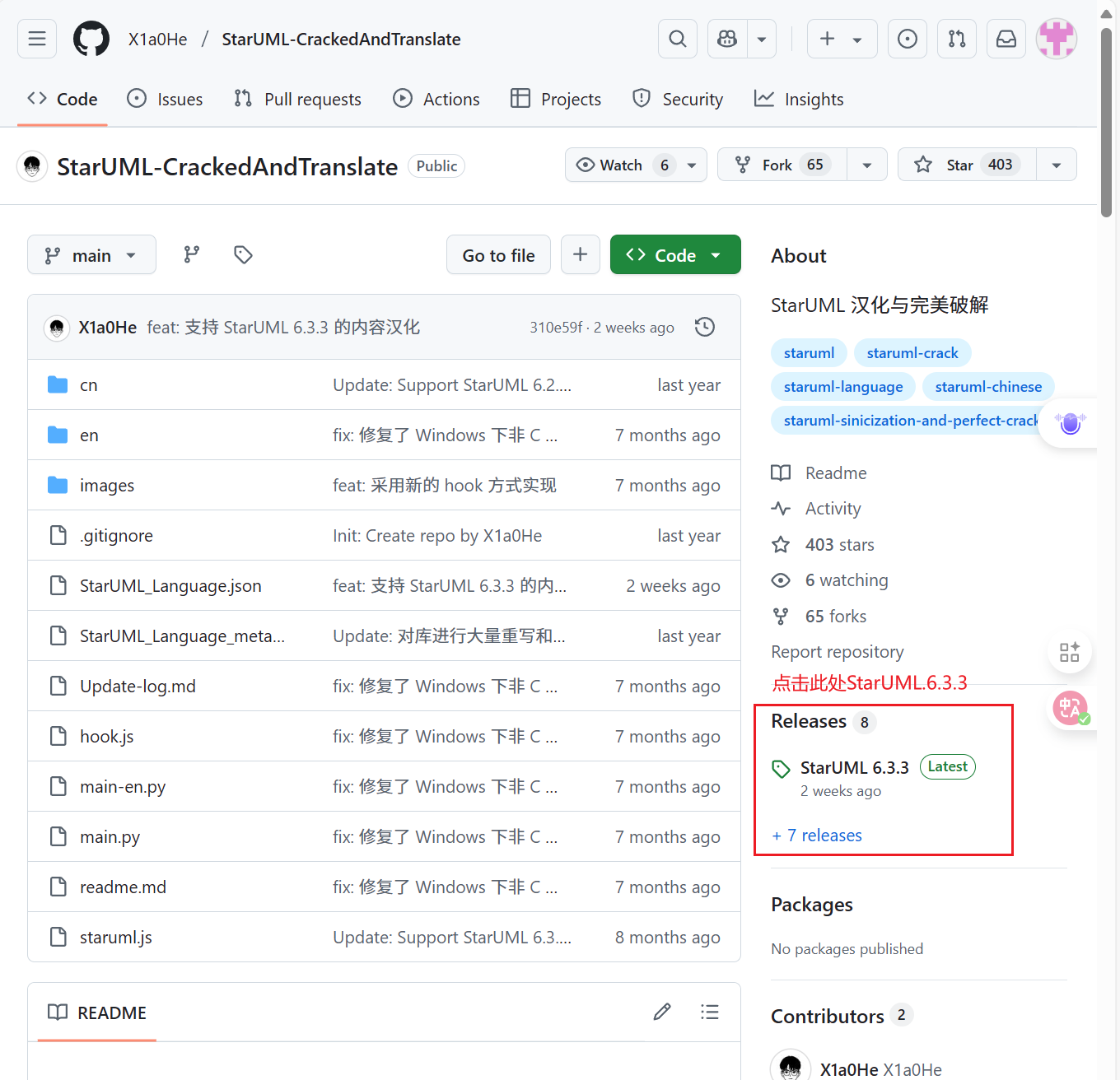 进去之后点击 Releases 下的 StarUML6.3.3按照: