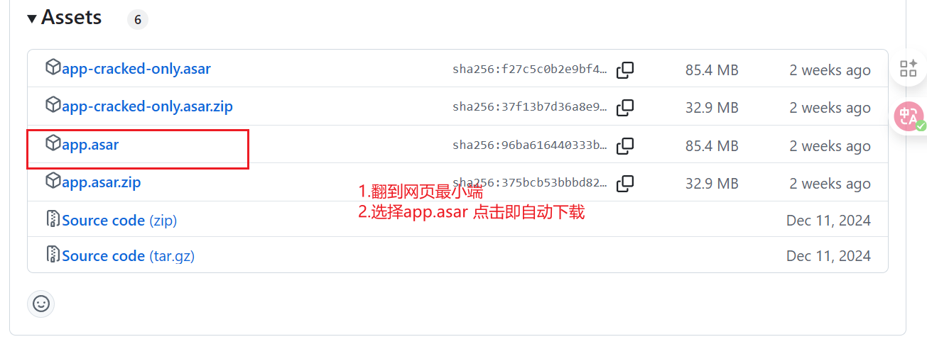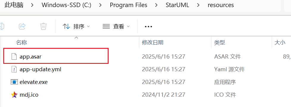 2.5找到下载好的app.asar文件,并点击复制,再到2.2的目录下,替换原有的app.asar文件