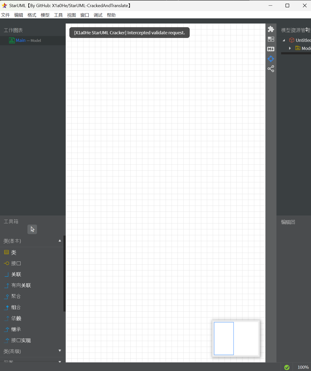 2.6重新运行StartUML,出现如图格式,则代表汉化及破解成功: