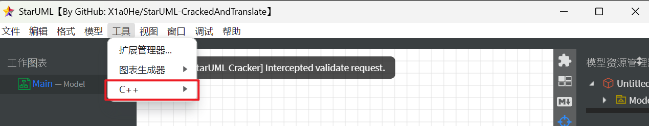 #主包作为第一次配StarUML环境可谓是吃进苦头,像无头苍蝇般,这里无偿分享给大家,如何从0到1实现汉化、破解、及解决软件c++扩展下载失败的问题
