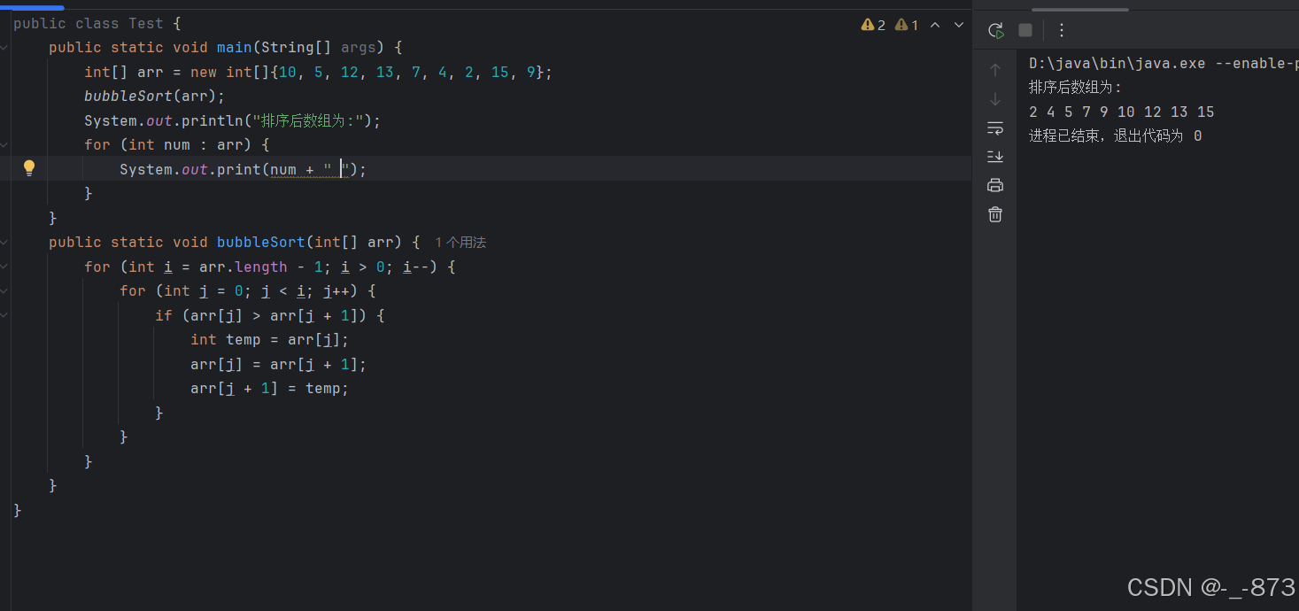 接下来编写代码,实现冒泡排序算法,代码如图所示: