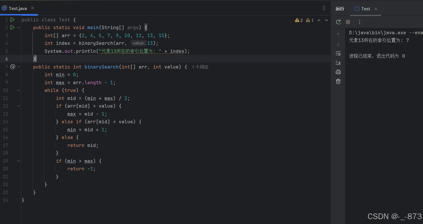 二分查找法依然需要使用到循环,但由于不知道循环次数,所以最好使用while循环实现,代码如图所示:
