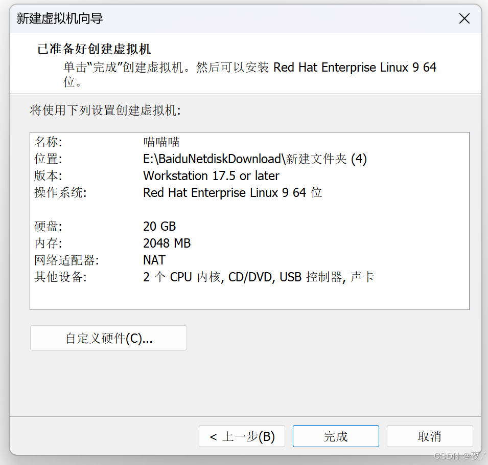 名称可根据自身喜好取名,保存位置保存于虚拟机资源目录处,可以默认,也可自己选择与更改