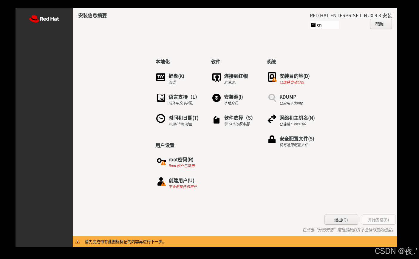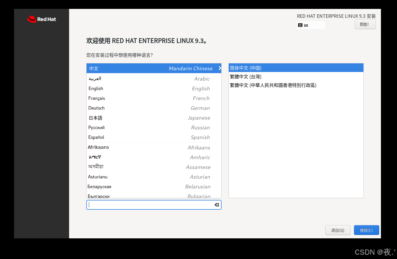 在虚拟机界面通过上下键选择install Red Hat,回车进行下一步