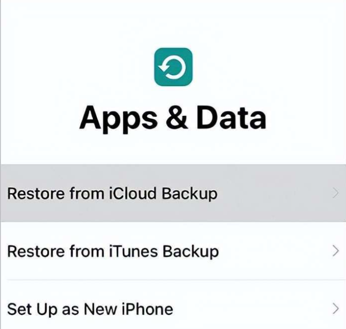 步骤3:设置您的iPhone后,在应用程序和数据屏幕上选择“从iCloud备份恢复”。