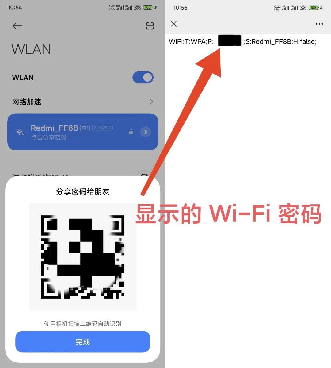 在系统设置里面把WiFi二维码截屏下来或分享给朋友,然后用微信一扫就出来了。