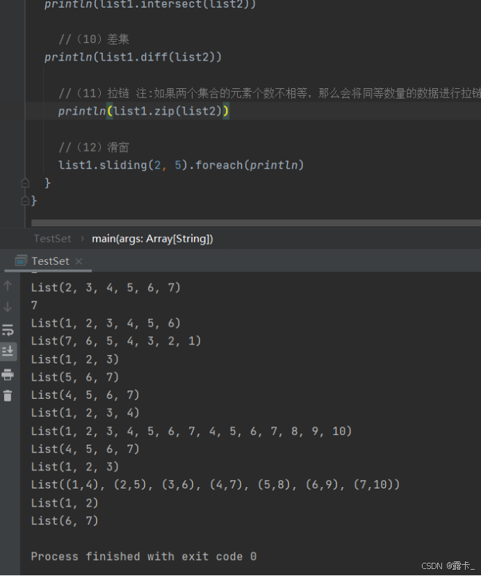 //(11)拉链 注:如果两个集合的元素个数不相等,那么会将同等数量的数据进行拉链,多余的数据省略不用