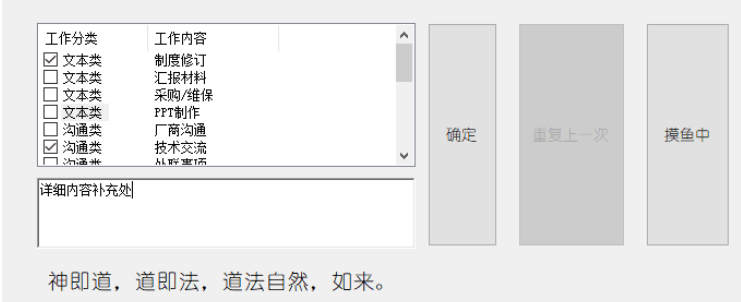如果啥也没干,点击摸鱼会随机勾选一个进行记录。