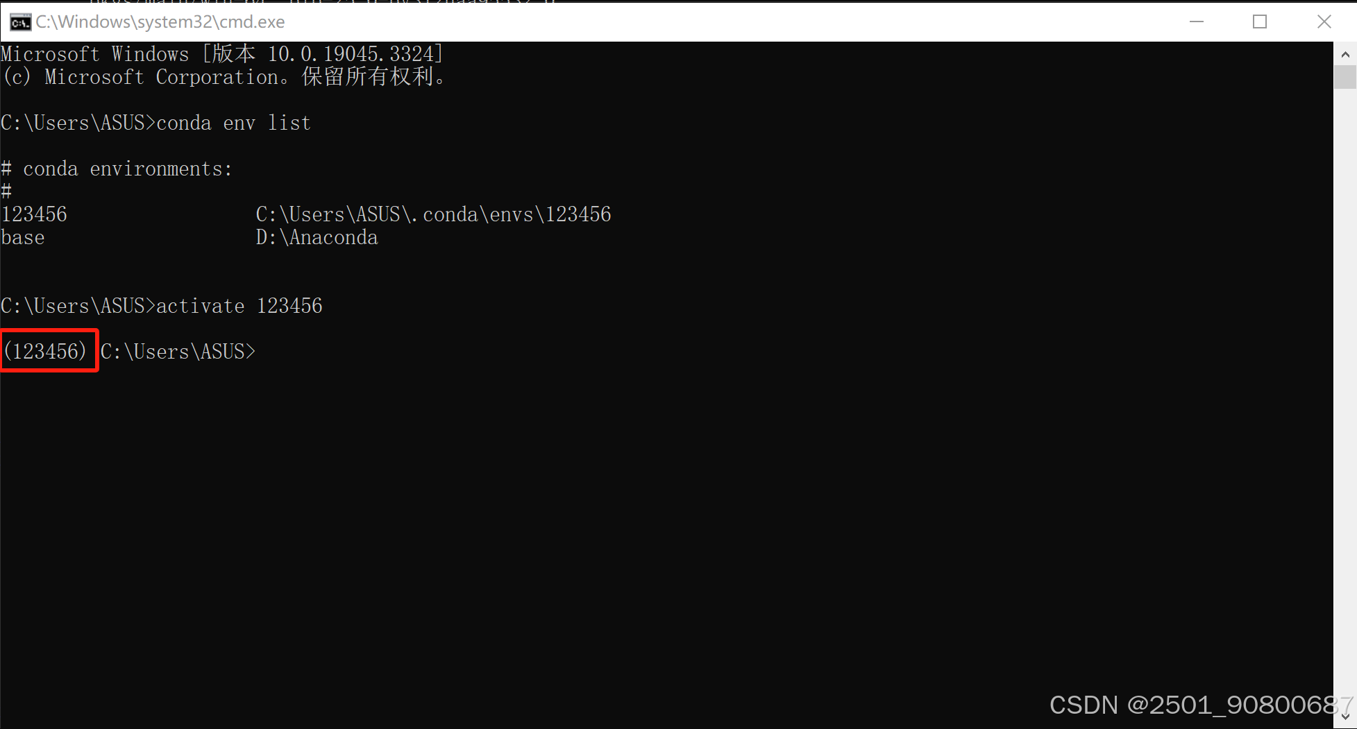 激活虚拟环境:conda active 环境名