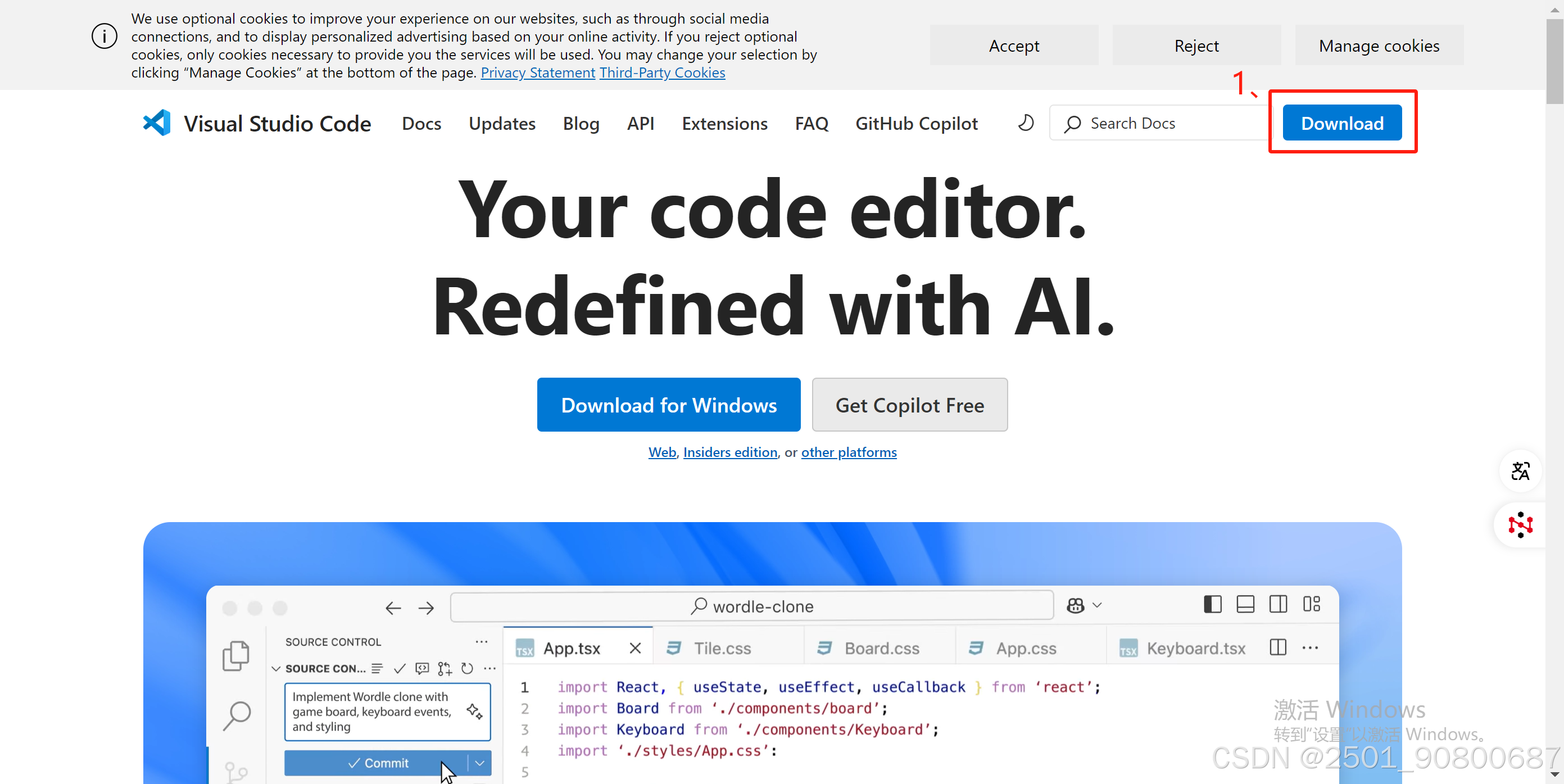 - vscode下载:官网链接:https://code.visualstudio.com