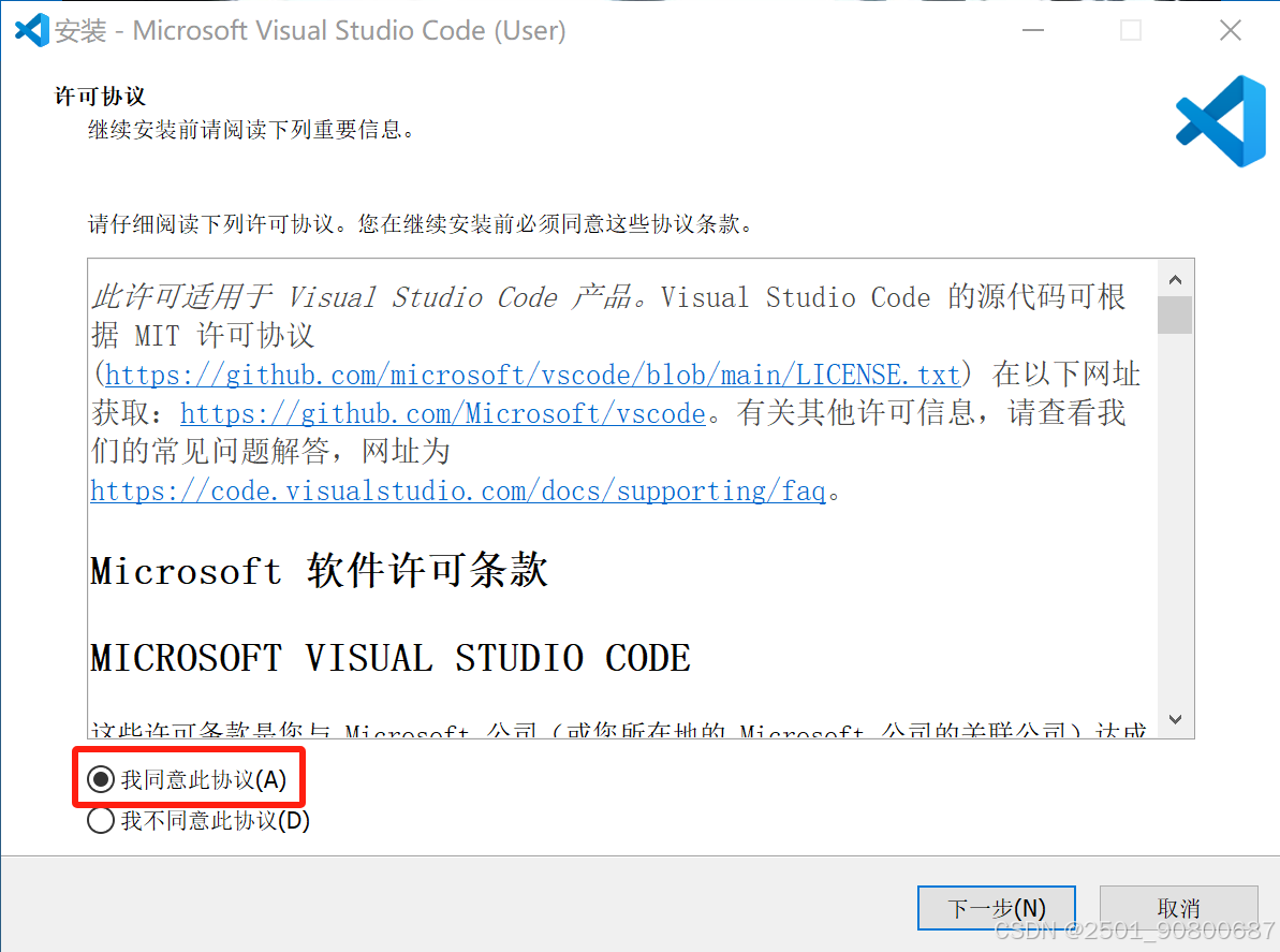 - 第一步点击“我同意此协议”,再点击“下一步”