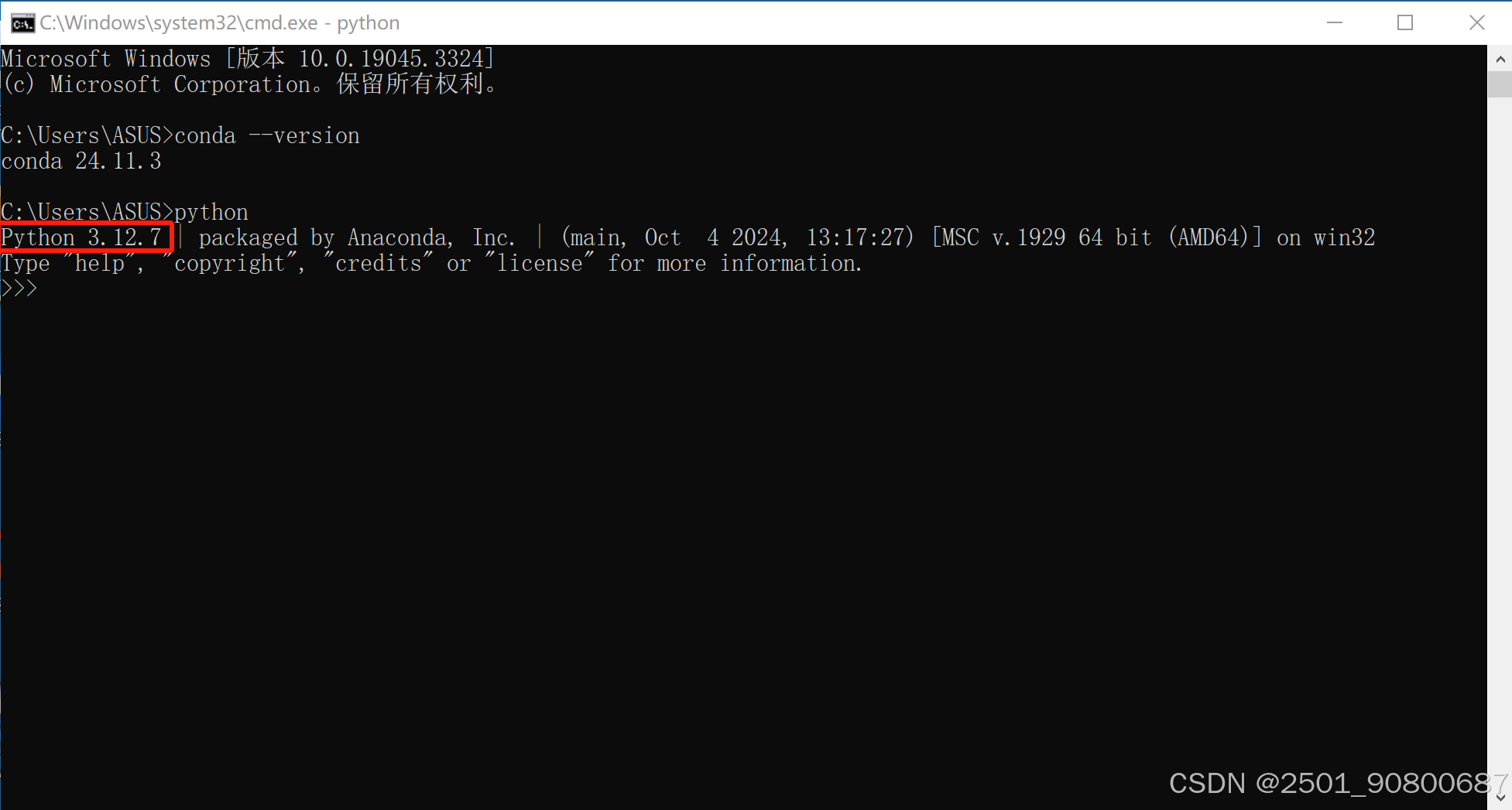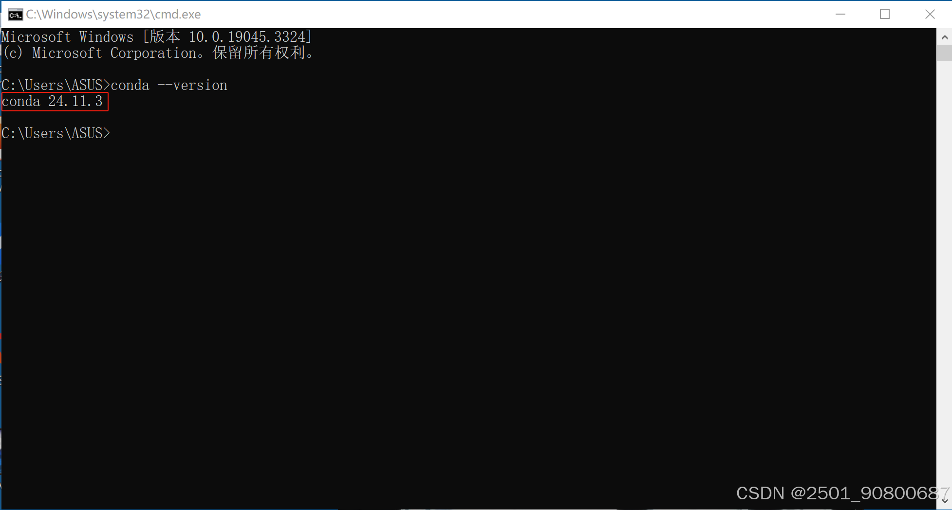 输入命令:conda --version