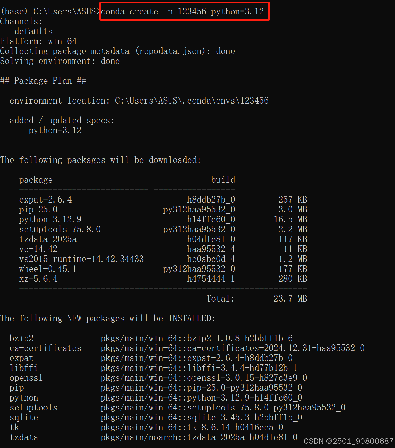 创建虚拟环境:conda create -n 环境名 python=版本号