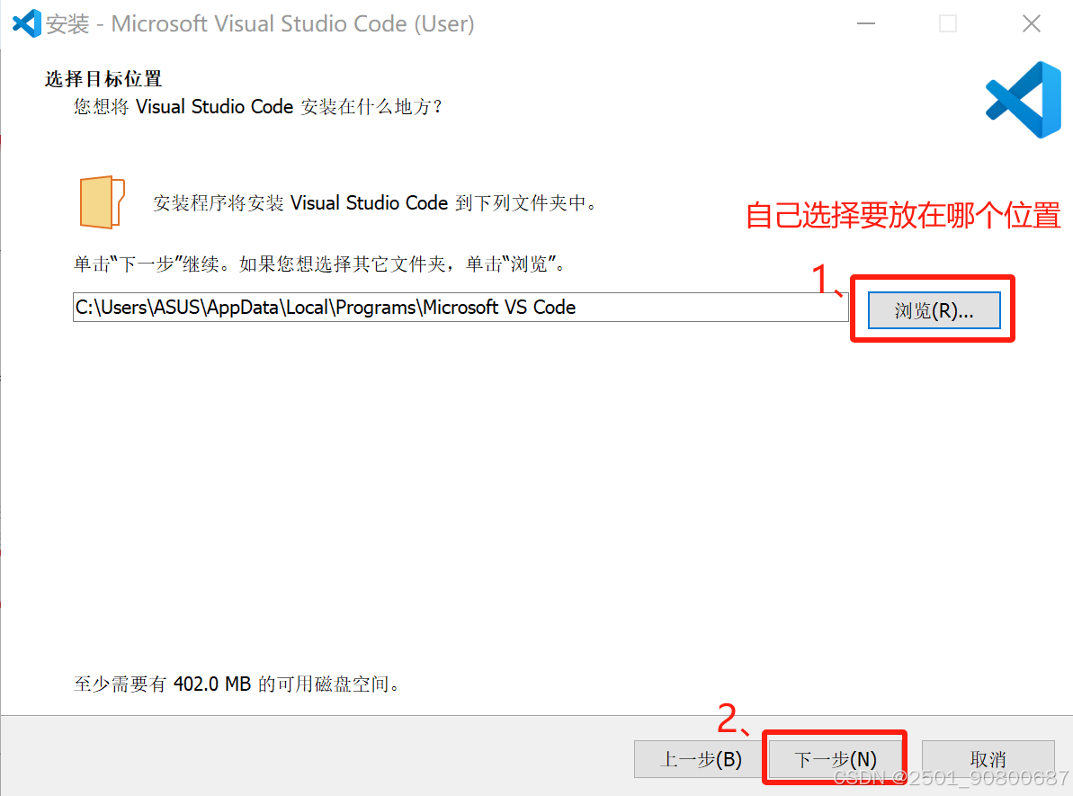 - 点击“浏览”选择要放在哪个位置,再点击“下一步”