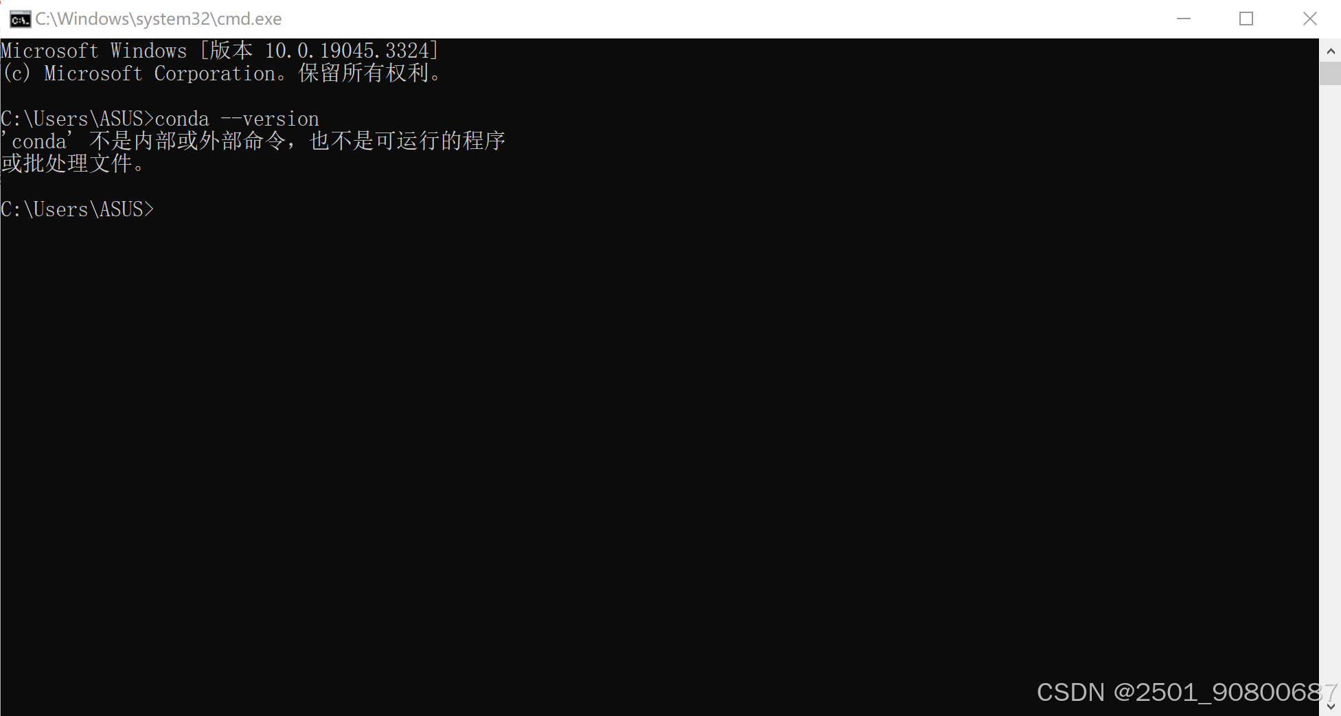 出现“‘conda’不是内部或外部命令,也不是可运行的程序或批处理文件。” 说明安装的时候没有给conda配置环境