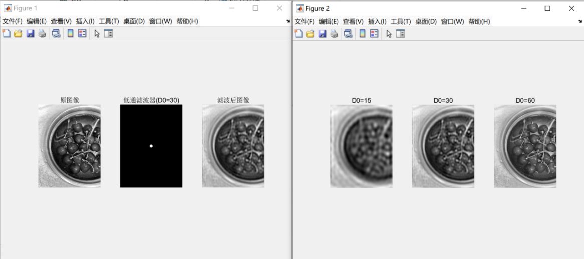 subplot(1,3,2); imshow(H); title('低通滤波器(D0=30)');