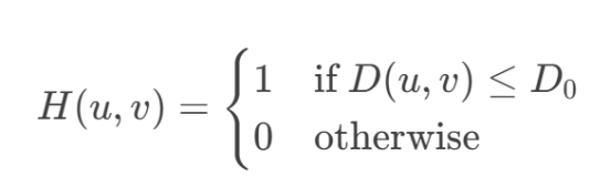 其中 D(u,v) 为频率点到中心的距离,D0为截止频率。
