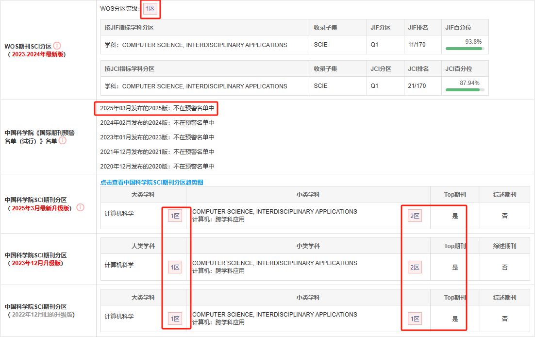 • 中科院大类分区:计算机科学 1区TOP(2021年度为2区)