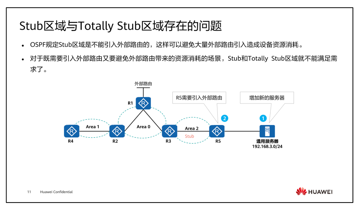 2.允许本区域通过import-route命令引入本地外部路由(如静态路由、RIP路由),并以LSA 7(NSSA外部路由) 格式在区域内传递,这是NSSA与Stub的核心区别;