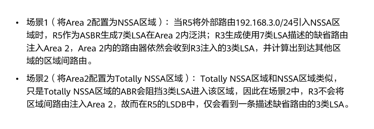 1.在NSSA基础上进一步禁止LSA 3(区域间汇总路由),仅允许LSA 1(区域内路由)、LSA 2(网段路由)、本区域的LSA 7(本地外部路由)传递;