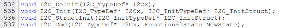 初始化步骤:1.开启I2C外设和对应的DPIO口的时钟;2.把I2C外设对应的GPIO口初始化为复用开漏模式(开漏:I2C协议要求,复用:GPIO控制权要交给硬件外设,软件配置就是通用开漏模式);3.使用结构体,对整个I2C进行配置;4.I2C_Cmd,使能