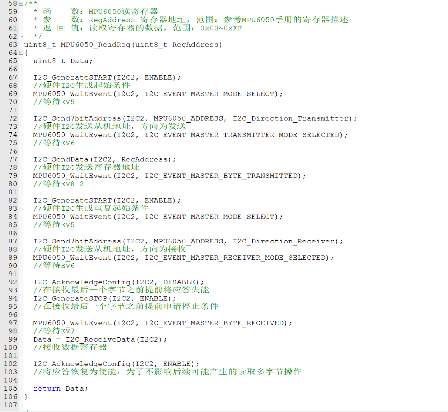 第七步:在MPU6050.c中配置指定地址读一个字节的时序