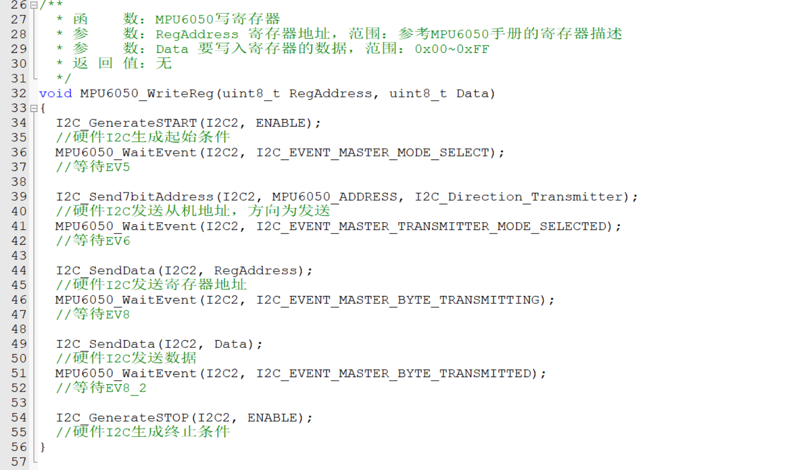第六步:在MPU6050.c中配置指定地址写一个字节的时序