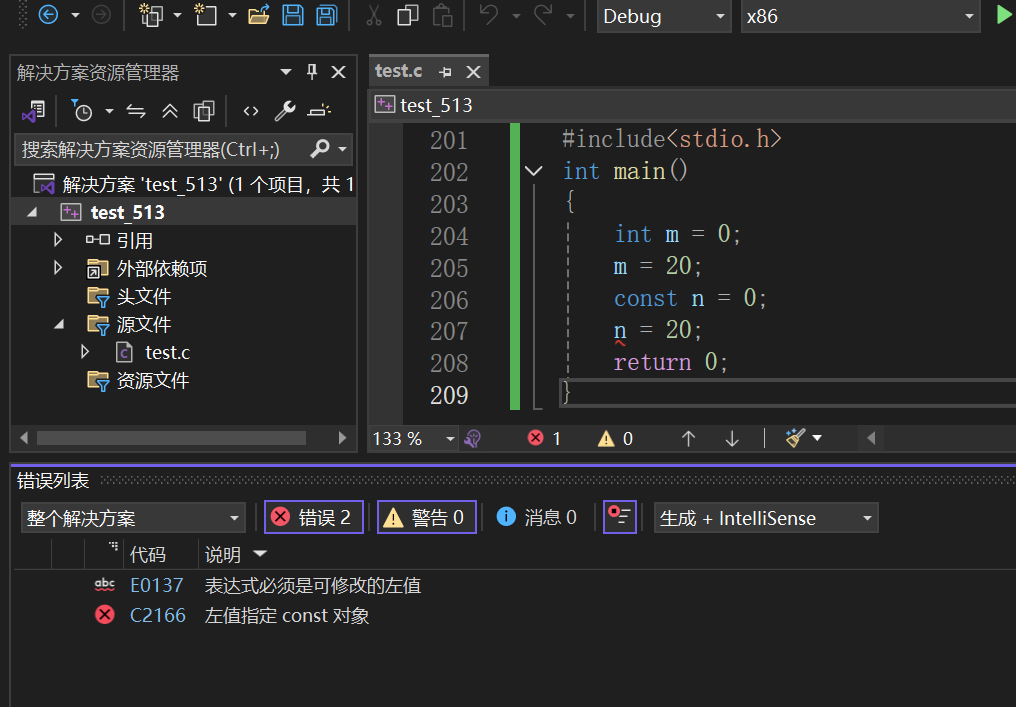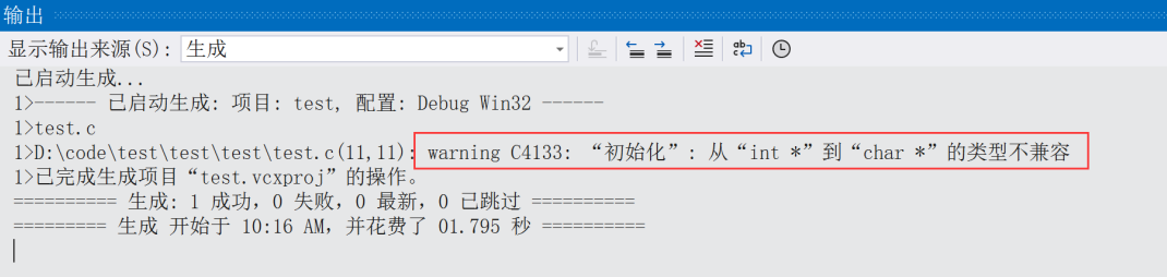 将上述代码放到VS2022中进行编译便会出现以下的警告: