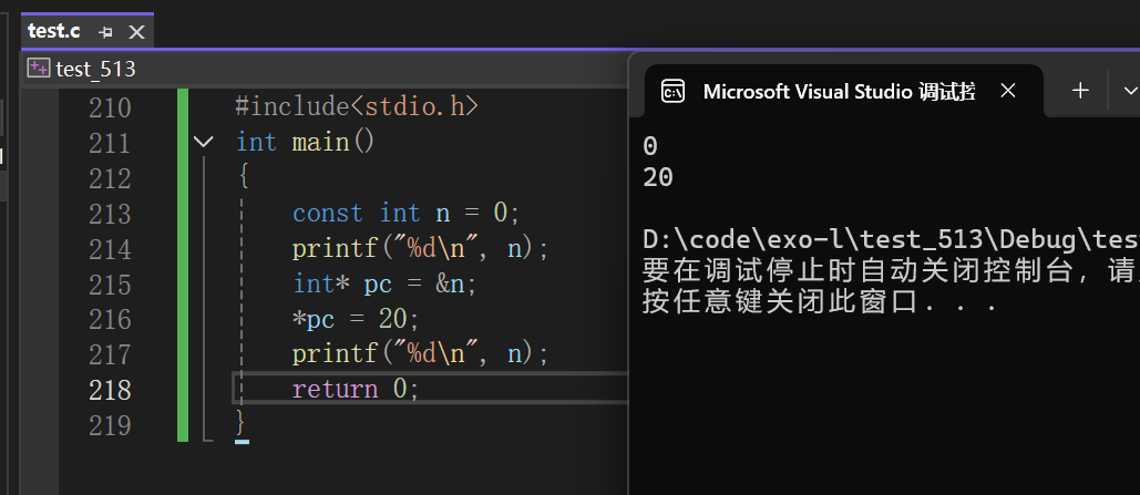 const如果放在*的左边,修饰的是指针指向的内容,保证指针指向的内容不能通过指针来改变。 但是指针变量本身的内容可变。