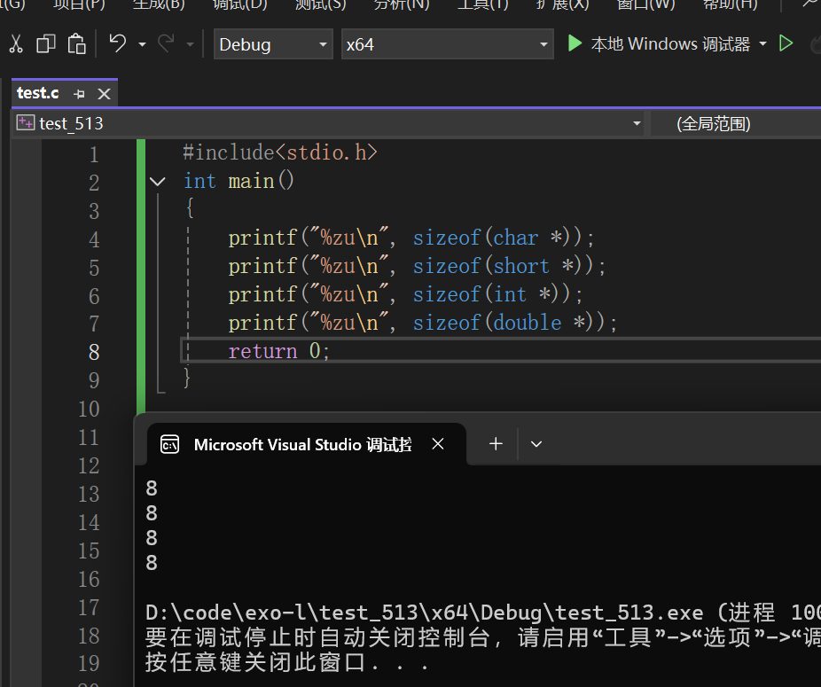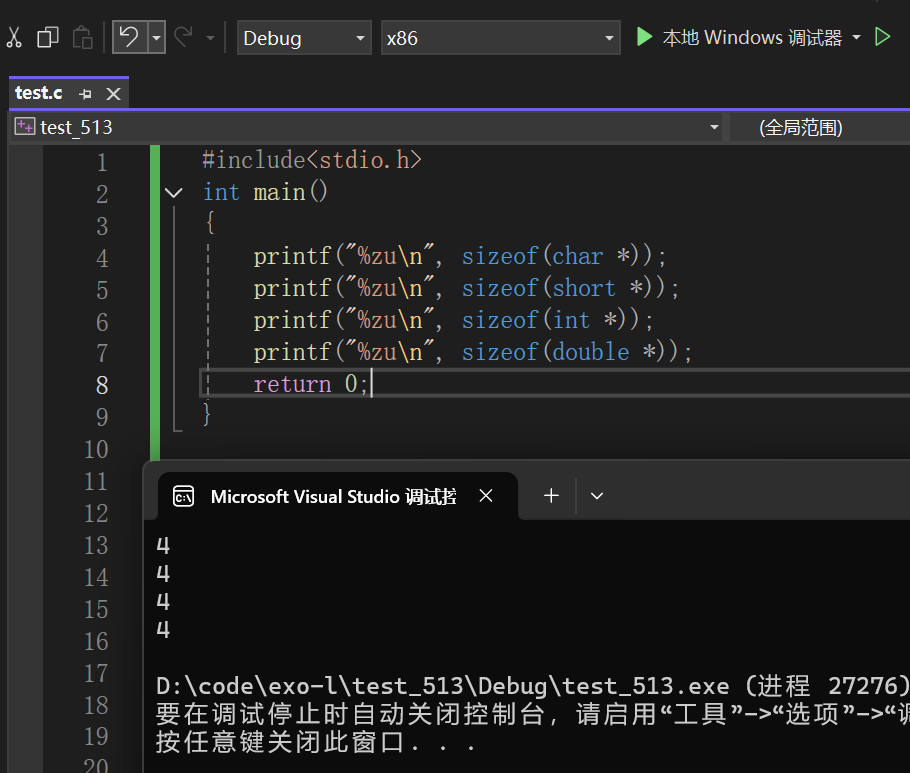 上述代码是在X86环境的输出结果,我们再换到X86环境来看看结果: