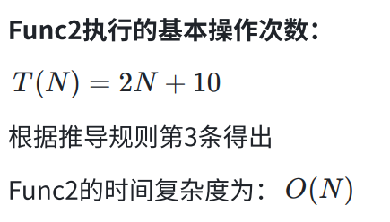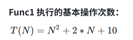 我们发现N越大,对T(N)的结果影响最大的就是N^2这一项,其余俩项造成的影响就可以忽略不计,所以Func1的时间复杂度:O(N^2)