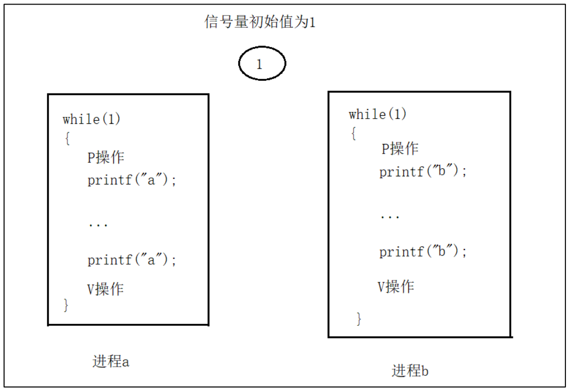 1.例题:进程 a 和进程 b 模拟访问打印机,进程 a 输出第一个字符‘a’表示开始使用打印