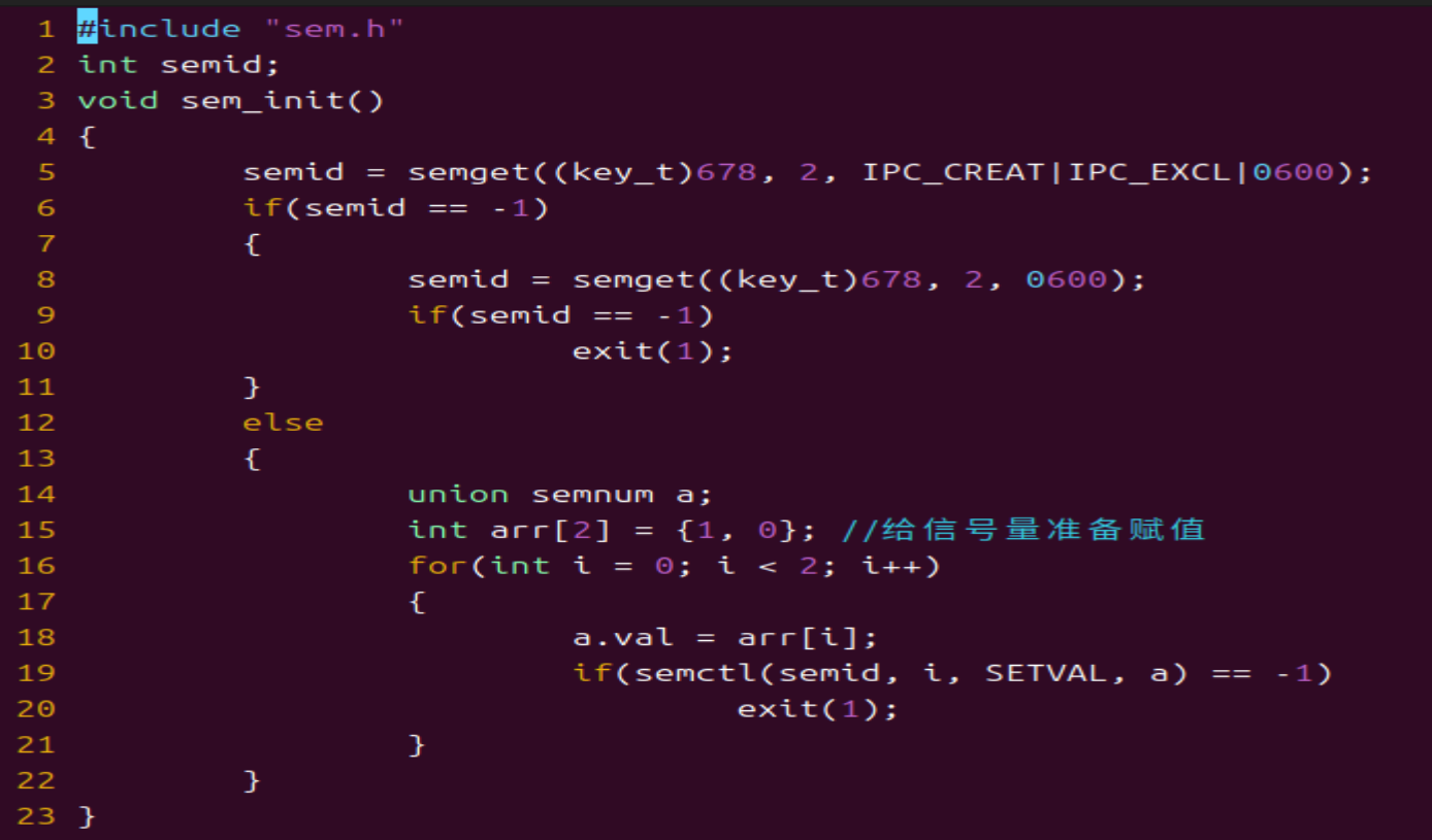 成功返回信号量ID,失败返回-1。
