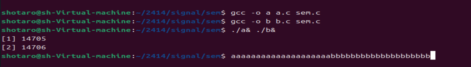 只能被一个进程使用,所以输出结果不应该出现 abab),如图所示: