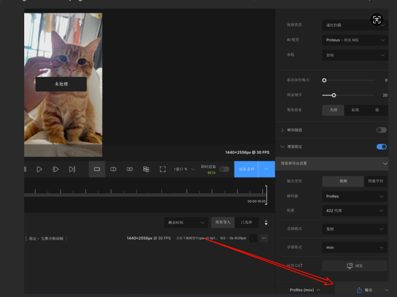 使用起来特别直观:导入需要处理的视频,在右侧可以选择输出分辨率,支持提升到4K甚至8K超高清。根据原始视频质量选择合适的增强级别,点击输出按钮就能开始处理。