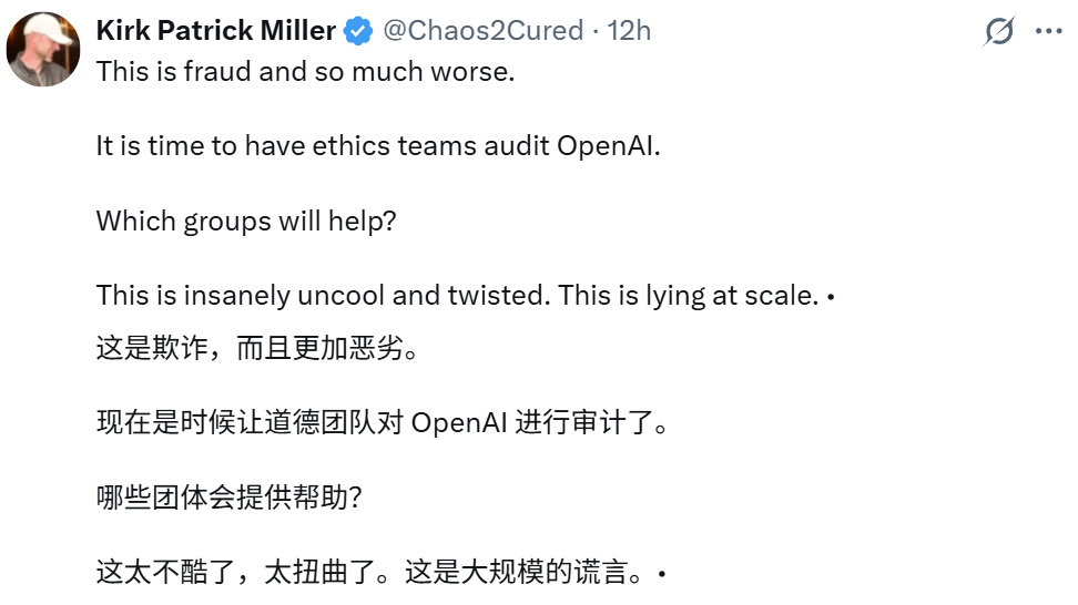 而在 Lex 推文的评论区,更多的还是对 OpenAI 「欺诈行为」的斥责: