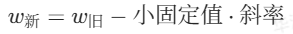 在更新w的时候,采用旧的w减去一个固定的值的方法其公式如下所示: