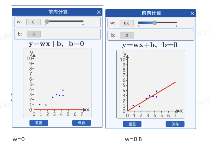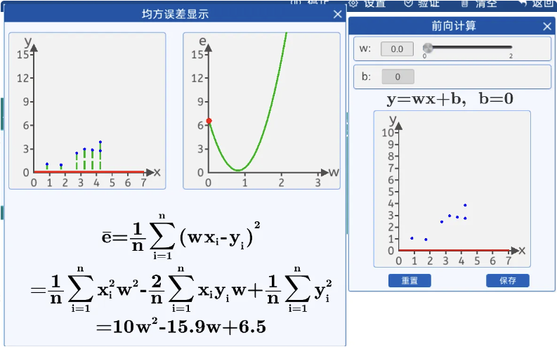 在前向计算中,为了简化运算,我们固定b的值为0,而w的值可以任意修改(范围0-2)。